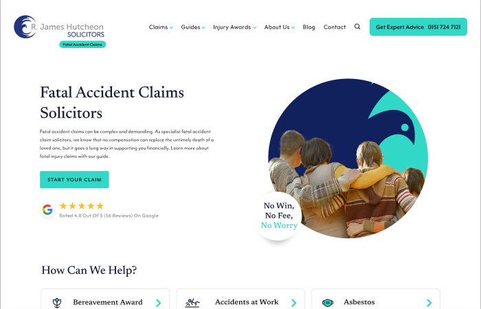 The Fatal Accident Claims site was designed to handle a uniquely sensitive subject—supporting families who have lost a loved one. While visually aligned with the Hutcheon Law brand, this site carries its own distinct tone, messaging, and emotional focus.