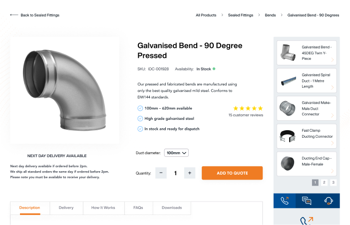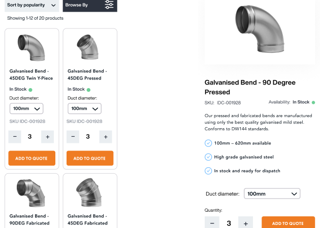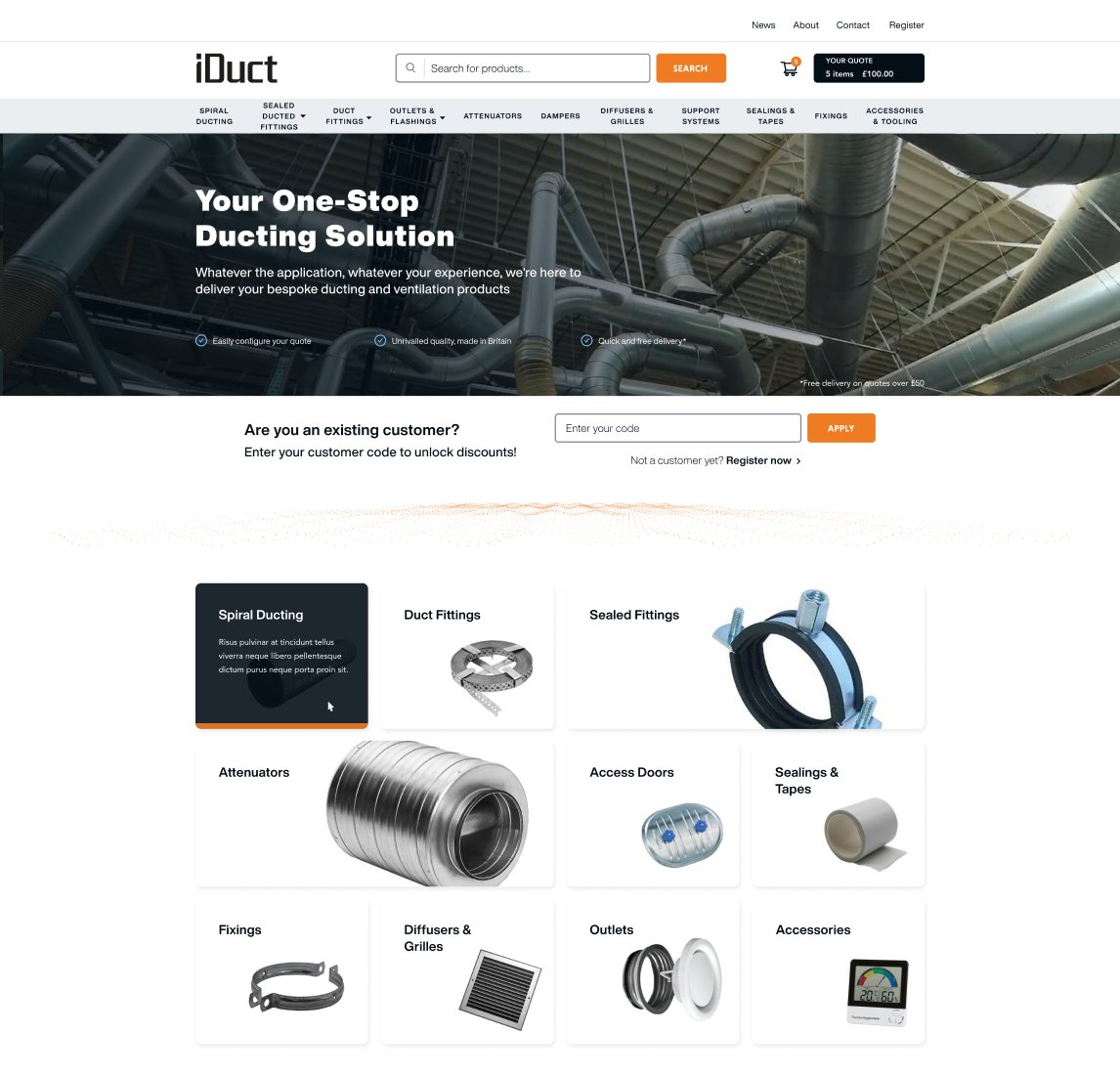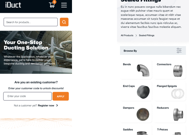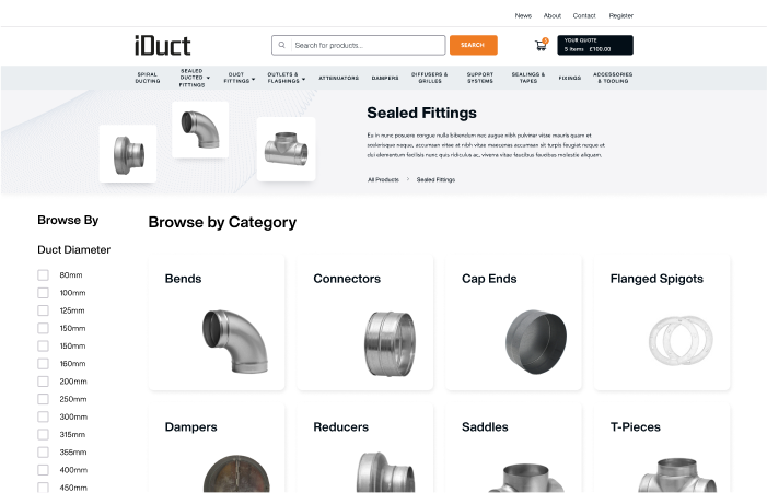 The iDuct catalogue is vast, and visitors must find the product they need as fast as possible, so an e-commerce design style was ideal. However, the site needed to be lightweight, aesthetically pleasing, and responsive on any platform. We achieved this by using plenty of white space that acts as a buffer between all on-page elements.