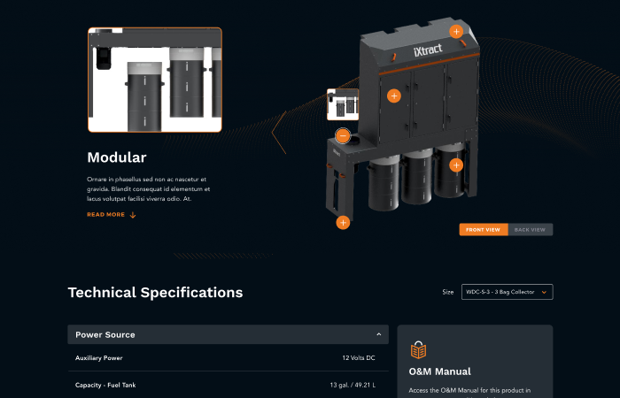 Recognising the growing prevalence of mobile web browsing, the platform integrates touch-friendly navigation and fast-loading elements, making it accessible and easy to use on smartphones and tablets. Users can virtually touch the products to explore their workings and details, enhancing retention rates. This interactive feature enables potential clients to look into the sophisticated design of the systems, showcasing iXtract as an industry leader. The tactile engagement helps to convey a deep understanding of the product's superior functionality and design directly through the user's mobile device.