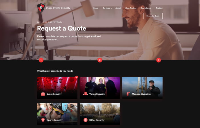 Historically, Stage Security manually dealt with inbound sales enquiries via phone calls and emails. The client asked us to improve the sales process by creating a dedicated quotation system capable of handling enquiries for different services. The enhanced quotation process improved the level of detail collected from new inbound business leads, assisting the client’s sales team in providing quotes more quickly and focusing on delivering an exceptional level of service. As the client expanded their range of services, we improved and refined the quotation process to further optimise for conversions.