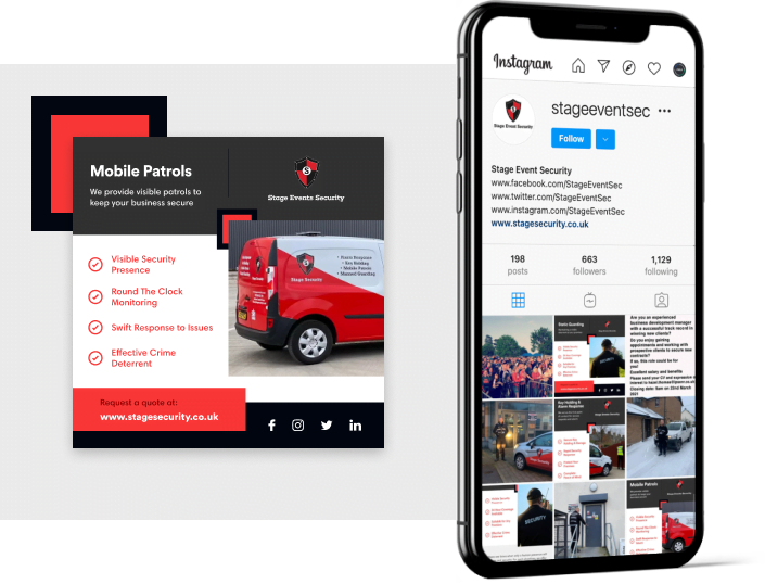 Stage Security wanted to showcase its service offerings effectively across social media platforms. Our design team crafted unique and stylish visuals that helped produce professional social posts on Facebook, Twitter and LinkedIn. We ensured that creatives matched the new website's visual theme and were superior to competitor's imagery. The social creatives greatly assisted the client in marketing their Covid-friendly services during the national lockdown.